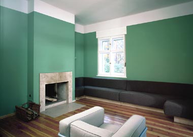Scharmützelsee, rostrote Kiefernstämme und dunkelgrüner Nadelwald. Ein komplexes Farb- und Materialkonzept verbindet Innen- und Außenräume des Hauses. Ein Kanon von Farben ist dabei abgestimmt auf die Ereignisse und Nutzer der Zimmer. Überraschende, subtile Raum-Erlebnisse entstehen. Diese Erlebnisse werden zum tages- und jahreszeitlich wechselnden Phänomen, das die Beziehung Architektur und Natur, Innen- und Außenraum auf besondere Weise intensiviert. Ein chromatischer Raum wird zum lichten Ort der Rekreation für eine Familie und ihre Gäste.