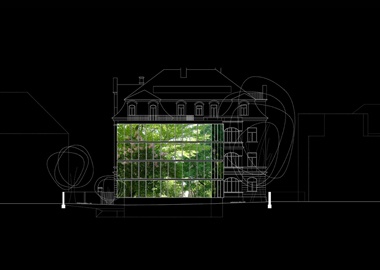 Wettbewerbsaufgabe war es, die denkmalgeschützte Villa an der Königinstrasse 23 umzubauen und mit einem neuen Anbau im Garten zu erweitern, um insgesamt ca. 81 Arbeitsplätze + Konferenzbereich, Tiefgarage und Dachterrasse in unterschiedlich vermietbaren Einheiten anzubieten. Villa und Baum bestandene Gartenfläche der Königinstrasse 23 haben wir als außerordentliche Qualitäten bewertet, die das Münchner Villenquartier mit seiner offenen Bauweise und einer gärtnerischen Durchdringung zum Englischen Garten einzigartig offenbaren. Mit unserer behutsamen Intervention im Altbau und dem transparenten Neubau haben wir versucht, die dialogische Qualität des Ortes - Architektur und Garten – zu verdichten und eine Nutzung als Bürogebäude spezifisch zu optimieren. Aus der Altbau-Villa lassen wir auf der Gartenseite einen gläsernen Büroneubau erwachsen.