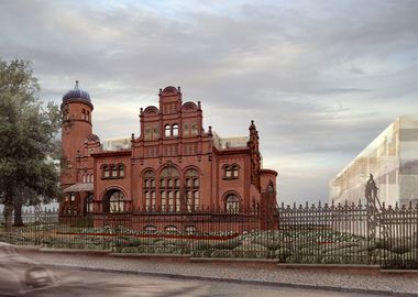 Das ehemalige Offizierskasino, 1898 von Baurat Wutsdorf geplant, befindet sich direkt am Ende der Sichtachse vom Schweriner Schloss über den Schlossgarten. In dieser exklusiven Lage sollen insgesamt 35 Arbeitsplätze und Konferenzräume für den Verwaltungssitz der Hydraulik Nord GmbH untergebracht werden. Das Casino als villenhaft angelegter Solitär im Bestand wird durch zwei Neubaumassnahmen, neue Dachkubatur und Neubausolitär ergänzt. Beide stehen in einem präzisen geometrischen Dialog und erhalten Hüllflächen aus golden schimmerndem und reflektierendem Glas, welches ein phänomenales Oberflächenthema des Schlossdaches subtil aufnimmt. Alt- und Neubau werden auf dem leicht abfallenden Grundstück dialogisch auf einen kartesischen bepflanzten Sockel gestellt. Die grosse Grundstücksfläche wird mit Haupt- und Nebenzufahrt, notwendigen Stellplätzen und Grünflächen parkartig angelegt. Beim einsturzbedrohten Altbau stehen ausschliesslich die Ziegelfassaden mit ihren zeittypischen Terrakotten und Formsteinen, die strassenseitigen Originalteile der schmiedeeisernen Zaunanlage und die Eisenspindeltreppe ins Belvedere des Turms unter Denkmalschutz. Diese Bauteile werden denkmalgerecht saniert und partiell rekonstruiert. Die zu neuer Aura gebrachte repräsentative Hülle des ehemaligen Casinos in Verbindung mit den minimalistisch-modernen architektonischen Komplettierungen - und – im poetischen Dialog mit Schloss und Schlossgarten als „geborgte Landschaft“ inszenieren die Qualitäten des Ortes zu einer einzigartigen architektonischen Visitenkarte für den neuen Unternehmensauftritt.