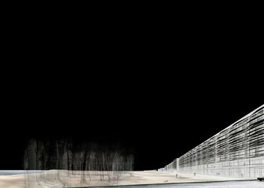 Block 5 als "building-site" verstehen wir als vertikales Interface zwischen Land- und Wasserseite. Maßstab und Phänomene der Landschaft - Wind, Wasser & Licht - bilden Referenzen und relative Bezugsgrößen für unser SEA SCAPE . ein MEERSTÜCK. Typologisch und baulich differenzieren wir am SEA SCAPE zwischen statischer Raumstruktur, Rückbau bis auf das Stahlbetonskelett und animierten Raumgrenzen, neuen transparenten Häuten an den Aussenfassaden mit seriellen, verschobenen Wellen der brise soleil, einer Windhaut aus Fallschirmseide in den offenen Liegehäusern und schimmernden GFK-Membranen der "Welle". Die landschaftlichen Horizonte von Wald und Meer werden durch die neuen Häute zu den eigentlichen Grenzen der Innenräume. Es ist, als ob man sich im Haus noch oder bereits in der Landschaft befindet. Mit der "Welle" als dienendem Band in allen Geschossen, den interaktiven "Windräumen" und Sonnendecks in den Liegehäusern, den "blauen Räumen" in den Treppen-Häusern, dem nomadischen, mobilen Interieur des Hotels definieren wir - versus der jetzigen hermetisch verschlossenen und steinernen Erscheinung der Bandstadt - ein Konzept der Leichtigkeit, Offenheit und Durchlässigkeit, das sich an Besucher mit einem zeitgenössischen, nomadischen Lebensgefühl richtet und die Urlaubsfrische eines Ortes am Meer kultiviert.